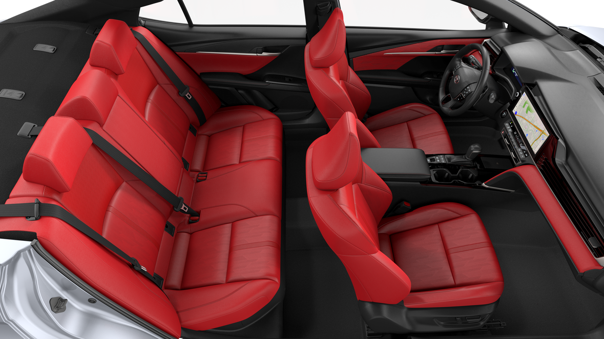 - Leather-trimmed front seats with seatback pockets; 8-way power-adjustable front driver's seat with power lumbar support; 8-way power-adjustable passenger front seat