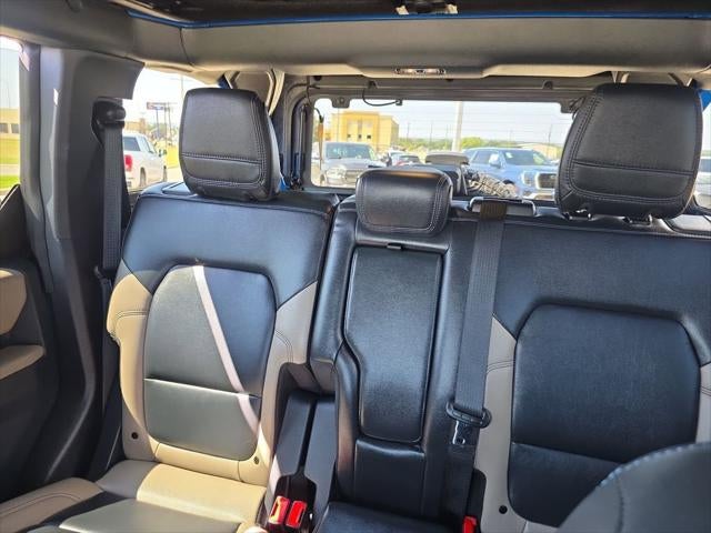 Off-Road Icon! 2023 Ford Bronco Wildtrak 4WD 2.7L V8 Power & Low Miles in Brownwood, TX[The Premier Central Texas Adventure SUV] Are you ready to unleash your inner adventurer on the rugged Brown County trails? This striking Velocity Blue Metallic 2023 Ford Bronco Wildtrak at Bruner Auto Group is the ultimate 4WD machine for drivers in Brownwood, Early, Comanche, and Coleman. With a Clean CARFAX One-Owner history and only 21,390 miles, this low-mileage off-roader is sitting 9,133 miles below the market average. Whether you're navigating the downtown square or heading out to Lake Brownwood State Park, this Bronco Wildtrak provides the perfect blend of modern technology and legendary capability.[Wildtrak Performance & Off-Road Dominance] The Wildtrak trim is engineered for high-speed off-roading and relentless power:Potent EcoBoost Power: Equipped with the robust 2.7L EcoBoost V6 engine, delivering a commanding 330 horsepower and 415 lb-ft of torque.Smooth 10-Speed Transmission: Features a refined 10-speed automatic transmission for seamless power delivery on US-377 and beyond.Advanced 4x4 with G.O.A.T. Modes: Includes the specialized Terrain Management System with seven Goes Over Any Type of Terrain modes, including Baja, Sand/Snow, and Mud/Ruts.Sasquatch Package Standard: High-clearance suspension, front and rear electronic-locking differentials, and Bilstein position-sensitive dampers for elite off-road performance.Towing Ready: Boasts a maximum towing capacity of 3,500 lbs, ideal for hauling jet skis or a small trailer to the lake.[Premium Comfort & High-Tech Interior] Inside, the Black Onyx Leather-Trimmed/Vinyl bucket seats provide a durable yet luxury-focused environment for all five passengers:Ford SYNC 4 Technology: Features a high-resolution touchscreen with wireless Apple CarPlay and Android Auto compatibility.Open-Air Freedom: The Velocity Blue hardtop is easily removable, allowing you to experience the beautiful Texas weather firsthand.Modern Amenities: Includes dual-zone automatic climate control, heated front seats, and a premium audio system for an elevated driving experience.Safety First: Drive with confidence thanks to Pre-Collision Assist, Blind Spot Monitoring, and a Rear View Camera with backup assist grid lines.[Why Buy From Bruner Auto Group in Early, TX?] Located at 224 Early Blvd, Early, TX 76802, our team has been a trusted part of the community since 1928. We pride ourselves on the Bruner Advantage, offering a transparent, stress-free buying experience for our neighbors across the Big Country. This Bronco is priced below the KBB Fair Purchase Price, representing an exceptional value for a top-tier off-road SUV.[Take the Next Step] High-performance SUVs like this Velocity Blue Wildtrak are in extreme demand and won't last long! Call our sales team today at (325) 200-4143 to schedule your VIP test drive. Visit the premier used SUV dealer in Brownwood, Texas and see why we are the preferred choice for drivers in Brown County!