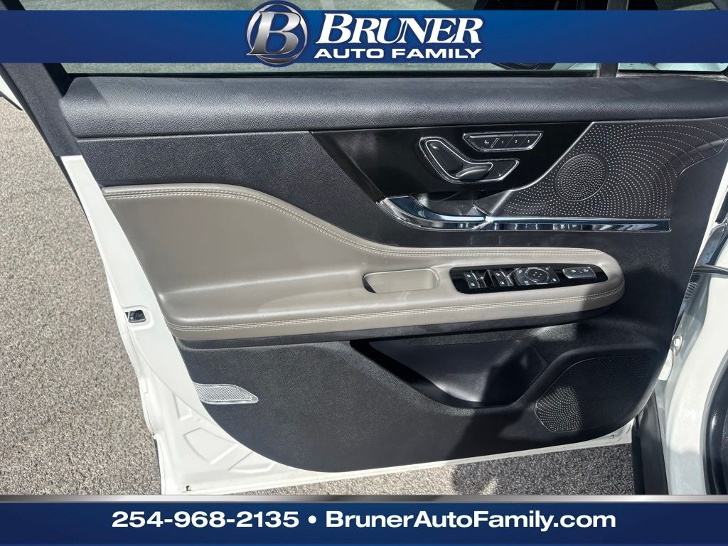 Equipment Group 100A, 10 Speakers, 3.81 Axle Ratio, 4-Wheel Disc Brakes, ABS brakes, Air Conditioning, Alloy wheels, AM/FM radio: SiriusXM, Auto High-beam Headlights, Auto-dimming Rear-View mirror, Automatic temperature control, Brake assist, Bumpers: body-color, Compass, Delay-off headlights, Driver door bin, Driver vanity mirror, Dual front impact airbags, Dual front side impact airbags, Electronic Stability Control, Emergency communication system: SYNC 4 911 Assist, Four wheel independent suspension, Front anti-roll bar, Front Bucket Seats, Front Center Armrest, Front dual zone A/C, Front reading lights, Fully automatic headlights, Heated door mirrors, Heated front seats, Illuminated entry, Knee airbag, Leather steering wheel, Lincoln Premium Audio System Subwoofer Delete, Lincoln Soft Touch Heated Comfort Seats, Low tire pressure warning, Memory seat, Navigation system: Connected Navigation (3-year trial), Occupant sensing airbag, Outside temperature display, Overhead airbag, Overhead console, Panic alarm, Passenger door bin, Passenger vanity mirror, Power door mirrors, Power driver seat, Power Liftgate, Power passenger seat, Power steering, Power windows, Radio data system, Radio: Lincoln Premium Audio System w/MP3, Rear anti-roll bar, Rear Parking Sensors, Rear reading lights, Rear seat center armrest, Rear window defroster, Rear window wiper, Remote keyless entry, Security system, SiriusXM Radio, Speed control, Speed-sensing steering, Speed-Sensitive Wipers, Split folding rear seat, Spoiler, Steering wheel mounted A/C controls, Steering wheel mounted audio controls, SYNC 4 Communications & Entertainment System, Tachometer, Telescoping steering wheel, Tilt steering wheel, Traction control, Trip computer, Variably intermittent wipers, and Wheels: 18 Warm Painted Alloy.
