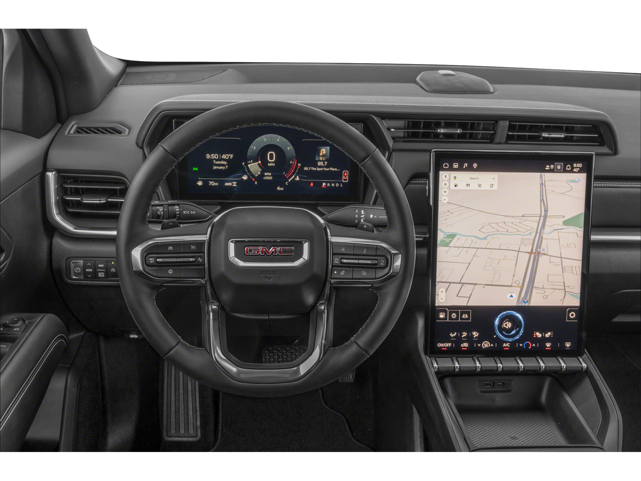 License Plate Front Mounting Package, Preferred Equipment Group 4SB, Technology Package II (HD Surround Vision, Rear Camera Mirror, Rear Camera Mirror Washer, Rear Pedestrian Alert, and Traffic Sign Recognition), AWD, 2-Way Power Driver Lumbar Seat Adjuster, 3.47 Final Drive Axle Ratio, 4-Wheel Disc Brakes, 6 Speakers, 6-Speaker Audio System Feature, 8-Way Power Driver Seat Adjuster, ABS brakes, Air Conditioning, Alloy wheels, AM/FM radio: SiriusXM, Auto High-beam Headlights, Automatic temperature control, Black Nameplate Kit, Brake assist, Bumpers: body-color, Cloth/Core Tec Seat Trim, Compass, Delay-off headlights, Driver and Front Passenger Heated Seats, Driver door bin, Driver vanity mirror, Dual front impact airbags, Dual front side impact airbags, Ebony Twilight Metallic Roof, Ebony Twilight Mirror Caps, Electronic Stability Control, Emergency communication system: OnStar and GMC connected services capable, Four wheel independent suspension, Front anti-roll bar, Front Bucket Seats, Front Center Armrest, Front dual zone A/C, Front fog lights, Front Passenger 4-Way Manual Seat Adjuster, Front reading lights, Fully automatic headlights, Garage door transmitter, Heated door mirrors, Heated front seats, Heated steering wheel, Illuminated entry, Low tire pressure warning, Navigation System, Occupant sensing airbag, Outside temperature display, Overhead airbag, Overhead console, Panic alarm, Panoramic Power Sunroof with Sunshade, Passenger door bin, Passenger vanity mirror, Power door mirrors, Power driver seat, Power Liftgate, Power steering, Power windows, Radio data system, Radio: Premium GMC Infotainment System, Rain sensing wipers, Rear air conditioning, Rear anti-roll bar, Rear seat center armrest, Rear window defroster, Rear window wiper, Remote keyless entry, Security system, SiriusXM with 360L Trial Subscription, Speed control, Speed-sensing steering, Split folding rear seat, Spoiler, Sport steering wheel, Steering wheel mounted audio controls, Tachometer, Telescoping steering wheel, Tilt steering wheel, Traction control, Trip computer, Variably intermittent wipers, Wheels: 17 Dark Machined Aluminum, and Wireless Apple CarPlay/Wireless Android Auto.