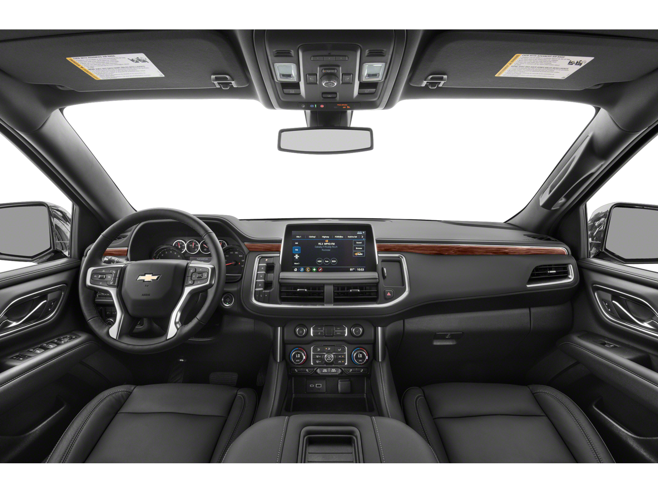 Driver Alert Package (Front & Rear Park Assist, Lane Change Alert w/Side Blind Zone Alert, Lane Keep Assist w/Lane Departure Warning, and Rear Cross Traffic Alert), License Plate Front Mounting Package, LT Signature Plus Package (Dual-Pane Power Panoramic Sunroof), Luxury Package (2nd Row Pwr Release 60/40 Split-Folding Bench Seat, 3rd Row 60/40 Power-Folding Split-Bench, Automatic Heated Steering Wheel, HD Surround Vision, Heated 2nd Row Outboard Seats, Memory Settings, Outside Heated Power-Adjustable Mirrors, Power Tilt & Telescopic Steering Column, and Rear Pedestrian Alert), Preferred Equipment Group 1LT (10-Way Power Driver & Passenger Seat Adjusters, 1st & 2nd Row Color-Keyed Carpeted Floor Mats, 2 USB Data Ports, Auto-Dimming Inside Rear-View Mirror, Bose 9-Speaker Stereo Audio System Feature, Bright Front & Rear Door Sill Plates, Color-Keyed Carpeting Floor Covering, Driver & Front Outboard Passenger Airbags, Floor Console w/Storage Area, Hands-Free Rear Power Programmable Liftgate, HD Radio, Heated Driver & Front Passenger Seats, Infotainment Display, Leather-Wrapped Steering Wheel, LED Daytime Running Lamps, Memory Settings For Driver, Remote Start, SiriusXM Radio w/360L, and Universal Home Remote), Rear Media & Nav Package (Radio: Chevrolet Infotainment 3 Premium System and Rear Seat Media System), 3.23 Rear Axle Ratio, 3rd row seats: split-bench, 4-Wheel Disc Brakes, 9 Speakers, ABS brakes, Air Conditioning, Alloy wheels, AM/FM radio: SiriusXM with 360L, Apple CarPlay/Android Auto, Auto High-beam Headlights, Auto-dimming Rear-View mirror, Automatic temperature control, Black Roof Rack Cross Rails, Brake assist, Bumpers: body-color, Compass, Delay-off headlights, Driver door bin, Driver vanity mirror, Dual front impact airbags, Dual front side impact airbags, Electronic Stability Control, Emergency communication system: OnStar and Chevrolet connected services capable, Four wheel independent suspension, Front anti-roll bar, Front Bucket Seats, Front Center Armrest, Front dual zone A/C, Front reading lights, Fully automatic headlights, Garage door transmitter, Heated door mirrors, Heated front seats, Illuminated entry, Leather Seating Surfaces, Leather steering wheel, Low tire pressure warning, Memory seat, Occupant sensing airbag, Outside temperature display, Overhead airbag, Overhead console, Panic alarm, Passenger door bin, Passenger vanity mirror, Power door mirrors, Power driver seat, Power Liftgate, Power passenger seat, Power Release 2nd Row Bucket Seats, Power steering, Power windows, Premium audio system: Chevrolet Infotainment 3 Plus, Premium Smooth Ride Suspension, Radio: Chevrolet Infotainment 3 Plus System, Rain sensing wipers, Rear air conditioning, Rear anti-roll bar, Rear reading lights, Rear seat center armrest, Rear window defroster, Rear window wiper, Remote keyless entry, Roof rack: rails only, Security system, Speed control, Speed-sensing steering, Split folding rear seat, Spoiler, Steering wheel mounted audio controls, Tachometer, Telescoping steering wheel, Tilt steering wheel, Traction control, Trip computer, Variably intermittent wipers, Voltmeter, Wheels: 18 x 8.5 Bright Silver Painted Aluminum, and Wheels: 20 x 9 Painted Aluminum.