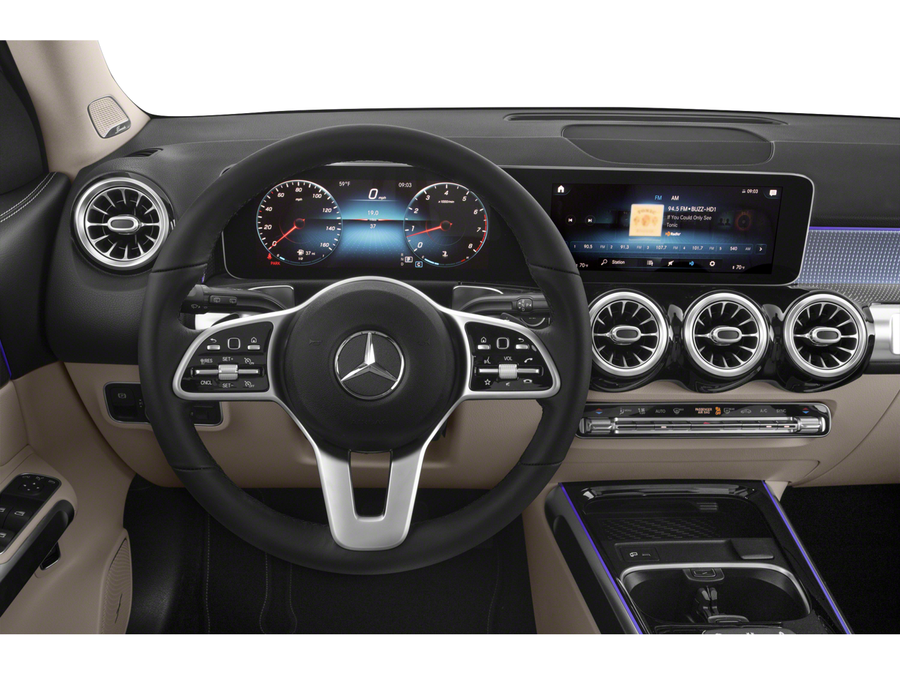 4-Wheel Disc Brakes, 8 Speakers, 8-Way Power Front Comfort Seats, ABS brakes, Air Conditioning, Alloy wheels, AM/FM radio, Apple CarPlay®/Android Auto®, Automatic temperature control, Axle Ratio: TBD, Brake assist, Bumpers: body-color, Child-Seat-Sensing Airbag, Delay-off headlights, Driver door bin, Driver vanity mirror, Dual front impact airbags, Dual front side impact airbags, Electronic Stability Control, Emergency communication system: Mercedes-Benz Emergency Call Service, Exterior Parking Camera Rear, Four wheel independent suspension, Front anti-roll bar, Front Bucket Seats, Front Center Armrest, Front dual zone A/C, Front fog lights, Front reading lights, Fully automatic headlights, Heated door mirrors, Illuminated entry, Knee airbag, Low tire pressure warning, MB-Tex Upholstery, Memory seat, Occupant sensing airbag, Outside temperature display, Overhead airbag, Overhead console, Panic alarm, Passenger door bin, Passenger vanity mirror, Power door mirrors, Power driver seat, Power Liftgate, Power passenger seat, Power steering, Power windows, Premium audio system: MBUX, Radio data system, Radio: Mercedes-Benz User Experience (MBUX), Rain sensing wipers, Rear anti-roll bar, Rear fog lights, Rear reading lights, Rear window defroster, Rear window wiper, Remote keyless entry, Roof rack: rails only, Security system, Smartphone Integration, Speed control, Speed-sensing steering, Split folding rear seat, Spoiler, Steering wheel mounted audio controls, Tachometer, Telescoping steering wheel, Tilt steering wheel, Traction control, Trip computer, Turn signal indicator mirrors, Variably intermittent wipers, and Wheels: 7.5J x 18 Twin 5-Spoke.