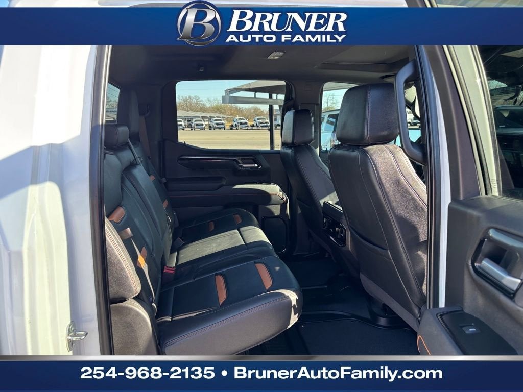 AT4 Preferred Package (Power Sliding Rear Window w/Rear Defogger and Universal Home Remote), AT4 Premium Package (Off-Road High Clearance Step (LPO)), Preferred Equipment Group 4SB (120-Volt Bed Mounted Power Outlet, 120-Volt Interior Power Outlet, 2 Charge/Data USB Ports Inside Center Console, 2 Type-C Charge-Only Rear USB Ports, 2 USB Ports, 220 Amp Alternator, Auto-Locking Rear Differential, Black Chrome Grille Insert Bars, Color-Keyed Carpeting Floor Covering, Deep-Tinted Glass, Electric Rear-Window Defogger, Floor-Mounted Center Console, Front Prem Floor Liners w/Removable Carpet Insert, Front Rain-Sensing Wipers, HD Surround Vision, Heated 2nd Row Outboard Seats, Heated Driver & Front Outboard Passenger Seating, Heavy-Duty Air Filter, Hill Descent Control, Hitch View, In-Vehicle Trailering System App, Integrated Trailer Brake Controller, Keyless Open & Start, LED Cargo Area Lighting, OnStar Services Capable, Perimeter Lighting, Power Door Locks, Power Front Passenger Windows w/Express Up/Down, Power Front Windows w/Driver Express Up/Down, Power Rake & Telescoping Steering Column, Power Rear Windows w/Express Down, Premium Bose 7-Speaker Sound System, Push Button Start, Rear Cross Traffic Braking, Rear Pedestrian Detection, Rear Prem Floor Liners w/Removable Carpet Insert, Rear Wheelhouse Liners, Red Recovery Hooks, Remote Vehicle Starter System, SiriusXM w/360L Trial Subscription, Spray-On Pickup Bedliner w/GMC Logo, Steering Wheel Audio Controls, Theft Deterrent System (Unauthorized Entry), Trailer Camera Provisions, Trailer Side Blind Zone Alert, Ultrasonic Front & Rear Park Assist, Ventilated Driver & Front Passenger Seats, Wi-Fi Hotspot Capable, and Wireless Charging), Technology Package (Bed View Camera, Multicolor 15 Diagonal Head-Up Display, and Rear Camera Mirror), Trailering Package (Hitch Guidance), 10-Speed Automatic, 4WD, Jet Black With Kalahari Accents Leather, 10-Way Power Driver Seat Adjuster w/Lumbar, 10-Way Power Passenger Seat Adjuster w/Lumbar, 170 Amp Alternator, 3.23 Rear Axle Ratio, 4-Wheel Disc Brakes, 7 Speakers, ABS brakes, Air Conditioning, Alloy wheels, AM/FM radio: SiriusXM with 360L, Apple CarPlay/Android Auto, Auto High-beam Headlights, Auto-dimming door mirrors, Auto-dimming Rear-View mirror, Automatic Emergency Braking, Automatic temperature control, Auxiliary External Transmission Oil Cooler, Block heater, Body Color Wheel Arch Moldings (LPO), Brake assist, Buckle to Drive, Bumpers: body-color, Compass, Delay-off headlights, Driver door bin, Driver Memory, Driver vanity mirror, Dual Active Exhaust, Dual front impact airbags, Dual front side impact airbags, Electronic Stability Control, Emergency communication system: OnStar, External Engine Oil Cooling, Following Distance Indicator, Forward Collision Alert, Front anti-roll bar, Front Bucket Seats, Front Center Armrest, Front dual zone A/C, Front fog lights, Front License Plate Kit, Front Pedestrian Braking, Front reading lights, Front wheel independent suspension, Fully automatic headlights, Heated door mirrors, Heated front seats, Heated rear seats, Heated steering wheel, Illuminated entry, IntelliBeam Automatic High Beam On/Off, Lane Keep Assist w/Lane Departure Warning, Low tire pressure warning, Memory seat, Navigation System, Occupant sensing airbag, Off-Road Suspension, Outside temperature display, Overhead airbag, Overhead console, Panic alarm, Passenger door bin, Passenger vanity mirror, Perforated Front Leather Seat Trim, Power door mirrors, Power driver seat, Power passenger seat, Power steering, Power Sunroof, Power windows