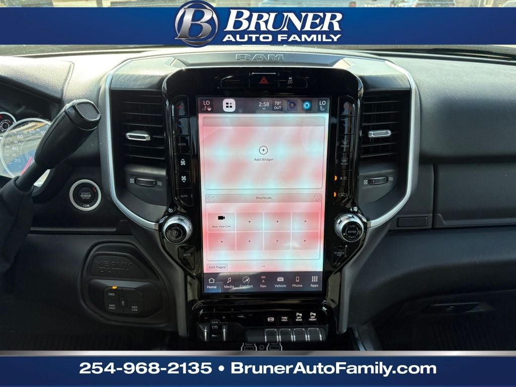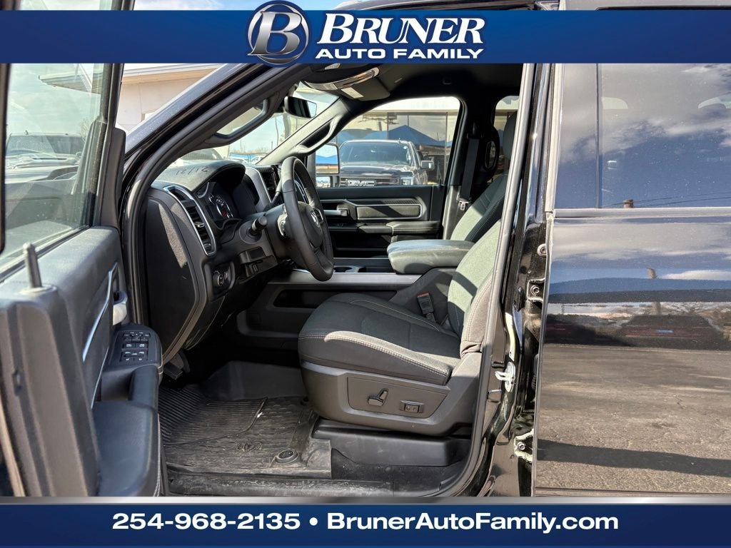 Big Horn Level 1 Plus Equipment Group (12 Touchscreen Display, 2 Way Rear Headrest Seat, 2nd Row In Floor Storage Bins, 4 Way Front Headrests, 40/20/40 Split Bench Seat, 4G LTE Wi-Fi Hot Spot, 9 Alpine Speakers w/Subwoofer, Air Conditioning ATC w/Dual Zone Control, Alexa Built-In, Anti-Spin Differential Rear Axle, Apple CarPlay, Auto Power-Folding Mirrors, Auto-Dimming Rear-View Mirror, Black Exterior Mirrors, Connected Travel & Traffic Services, Connectivity - US/Canada, Dual Glove Boxes, Emergency Vehicle Alert System (EVAS), Exterior Mirrors Courtesy Lamps, Exterior Mirrors w/Heating Element, Exterior Mirrors w/Supplemental Signals, Foam Bottle Insert (Door Trim Panel), Folding Flat Load Floor Storage, Footwell Courtesy Lamp, Forward & Reverse Utility Lights, Front Armrest w/Cupholders, Front Center Seat Cushion Storage, Front Seat Back Map Pockets, Global Telematics Box Module (TBM), Glove Box Lamp, Google Android Auto, GPS Antenna Input, GPS Navigation, HD Radio, Integrated Voice Command w/Bluetooth®, LED Bed Lighting, Locking Lower Glove Box, Luxury Steering Wheel, Manual Adjust 4-Way Front Passenger Seat, Mirror Running Lights, MOPAR Deployable Bed Step, MOPAR Spray In Bedliner, Off-Road Info Pages, Power 2-Way Driver Lumbar Adjust, Power Adjust 8-Way Driver Seat, Power Adjust Mirrors, Power Adjustable Convex Aux Mirrors, Power Heated Folding Telescopic Mirrors, Power Telescoping Mirrors, Premium Cloth 40/20/40 Bench Seat, Radio: Uconnect 5 Nav w/12.0 Display, Rear 60/40 Folding Seat, Rear Dome w/On/Off Switch Lamp, Remote Start System, Remote USB Port - Charge Only, Selectable Tire Fill Alert, SiriusXM Radio Service, SiriusXM w/360L, Steering Wheel Mounted Audio Controls, Storage Tray, and Trailer Tow Pages), Heated Seats & Wheel Group (Heated Front Seats and Heated Steering Wheel), Night Edition (Black Exterior Truck Badging, Black Interior Accents, Black Wheel Center Hub, Body Color Grille Surround, Gloss Black Nostrils/Mic Black Grille, Painted Front Bumper, Painted Rear Bumper, and Wheels: 20 x 8.0 Black Painted Aluminum), Quick Order Package 24Y Lone Star (Regional) (Lone Star Badge), 4-Wheel Disc Brakes, 5th Wheel/Gooseneck Towing Prep Group, 6 Speakers, ABS brakes, Air Conditioning, Alloy wheels, AM/FM radio: SiriusXM, Apple CarPlay/Android Auto, Brake assist, Bumpers: chrome, Clearance Lamps, Cloth 40/20/40 Bench Seat, Compass, Delay-off headlights, Driver door bin, Dual front impact airbags, Dual front side impact airbags, Electronic Stability Control, Front anti-roll bar, Front Center Armrest w/Storage, Front fog lights, Front License Plate Bracket, Front reading lights, Fully automatic headlights, Heated door mirrors, Illuminated entry, Low tire pressure warning, Manual Adjust 4-Way Driver Seat, MOPAR Front & Rear Rubber Floor Mats, Occupant sensing airbag, Outside temperature display, Overhead airbag, Overhead console, Panic alarm, ParkView Rear Back-Up Camera, Passenger door bin, Passenger vanity mirror, Power door mirrors, Power steering, Power windows, Radio data system, Radio: Uconnect 5 w/8.4 Display, Rear anti-roll bar, Rear Folding Seat, Rear seat center armrest, Rear step bumper, Rear window defroster, Remote keyless entry, Security system, Speed control, Tachometer, Tilt steering wheel, Traction control, Trip computer, Turn signal indicator mirrors, Variably intermittent wipers, Vinyl 2nd Row Seat, Voltmeter, and Wheels: 18 x 8.0 Polished Aluminum.