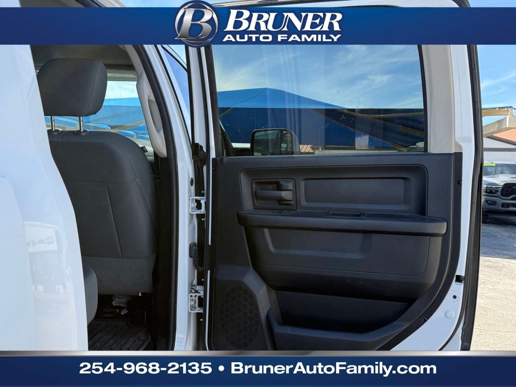 Chrome Appearance Group (Bright Front Bumper, Bright Grille, Bright Rear Bumper, and Wheels: 18 x 8.0 Steel Chrome Clad), Popular Equipment Group (1-Yr SiriusXM Radio Service, 40/20/40 Split Bench Seat, Carpet Floor Covering, Cloth 40/20/40 Bench Seat, For More Info, Call 800-643-2112, Front & Rear Floor Mats, No Satellite Coverage w/AK/HI, Rear Folding Seat, Remote Keyless Entry, and SiriusXM Satellite Radio), Protection Group, Quick Order Package 22A Tradesman (Front Armrest w/Cupholders and Storage Tray), 17 x 7.5 Steel Styled Wheels, 180 Amp Alternator, 3.73 Rear Axle Ratio, 4-Wheel Disc Brakes, 5.0 Touchscreen Display, 6 Speakers, ABS brakes, Air Conditioning, AM/FM radio, Anti-Spin Differential Rear Axle, Black Exterior Mirrors, Brake assist, Center Hub, Charge Only Remote USB Port, Delay-off headlights, Driver door bin, Dual front impact airbags, Dual front side impact airbags, Electric Shift-On-The-Fly Transfer Case, Electronic Stability Control, Electronically Controlled Throttle, Exterior Mirrors Courtesy Lamps, Exterior Mirrors w/Heating Element, Exterior Mirrors w/Supplemental Signals, Front & Rear Rubber Floor Mats, Front anti-roll bar, Front Bumper Sight Shields, Front Center Armrest, Fully automatic headlights, GPS Antenna Input, Heated door mirrors, Heavy Duty Vinyl 40/20/40 Split Bench Seat, Hemi Badge, Integrated Voice Command w/Bluetooth®, Locking Tailgate, Low tire pressure warning, Manual Adjust Seats, Media Hub (USB, AUX), Next Generation Engine Controller, Occupant sensing airbag, Overhead airbag, Overhead Console, ParkSense Rear Park Assist System, ParkView Rear Back-Up Camera, Passenger door bin, Power Black Trailer Tow Mirrors, Power door mirrors, Power steering, Power windows, Radio data system, Radio: 3.0, Radio: Uconnect 5.0, Rear seat center armrest, Rear step bumper, Rear View Auto Dim Mirror w/Display, Rear View Mirror w/Microphone, Rear Wheel Spats, Speed control, Tachometer, Temperature & Compass Gauge, Tilt steering wheel, Tip Start, Traction control, Trailer Brake Control, Trailer Tow Mirrors, Transmission Oil Cooler, Variably intermittent wipers, Vendor Painted Cargo Box Tracking, and Voltmeter.