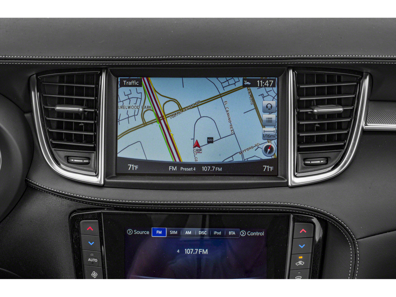 - Radio: Bose Performance Series Audio System -inc: 16 speakers, metallic speaker grilles on tweeters, INFINITI InTouch, INFINITI InTouch services, INFINITI InTouch dual display system w/upper 8" and lower 7" HD touch screens, wireless Apple CarPlay, Android Auto, SiriusXM radio w/advanced audio features and 90-day complimentary trial, INFINITI voice recognition, Siri Eyes Free, Wi-Fi hotspot, active noise cancellation, navigation w/3D building graphics, 5 year complimentary access to premium traffic and MapCare, SiriusXM Traffic w/3 month complimentary trial access to real-time traffic information and SiriusXM Travel Link w/3 month complimentary trial access to weather, fuel prices, stock prices, sport scores, movie listings and parking