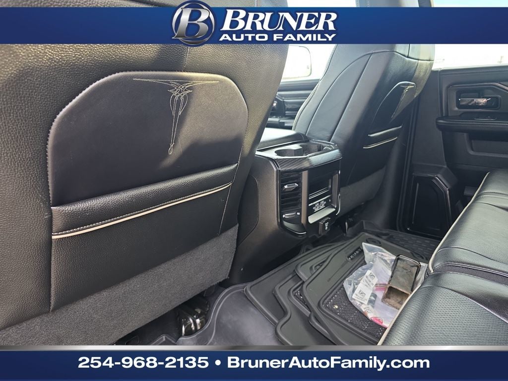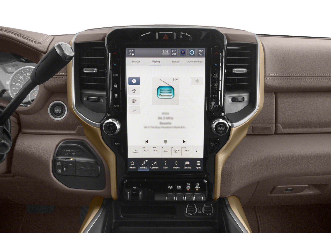 Limited Level 1 Equipment Group (17 Speaker harman kardon Premium Sound, Adaptive Cruise Control w/Stop, Adaptive Steering System, Center Stop Lamp w/Cargo View Camera, Digital Rearview Mirror, Full Speed Forward Collision Warning Plus, Lane Keep Assist, Surround View Camera System, and Trailer Reverse Guidance), Night Edition (Black Exterior Mirrors, Black Exterior Truck Badging, Black Headlamp Bezels, Black Limited Grille, Black RAM Head Tailgate Badge, Black Tail Lamp Bezels, Black Wheel Center Hub, Body Color Door Handles, Body Color Grille Surround, Exterior Mirrors Courtesy Lamps, Exterior Mirrors w/Heating Element, Exterior Mirrors w/Memory, Exterior Mirrors w/Supplemental Signals, Mirror Running Lights, Mirror-Mounted Aux Reverse Lamps, Painted Front Bumper, Painted Rear Bumper, Power Adjustable Convex Aux Mirrors, Power-Folding Mirrors, Pwr Convenience Black Tow Mirrors w/Spotter & Memory, Tow Hooks, Trailer Tow Mirrors, and Wheels: 20 x 8.0 Cast Aluminum Black), Off Road Package (Front Performance Tuned Shock Absorbers, Hill Descent Control, Off Road Decal, and Rear Performance Tuned Shock Absorbers), Quick Order Package 2HM Limited, Snow Chief Group (220 Amp Alternator, Anti-Spin Differential Rear Axle, Clearance Lamps, Dash Pass Thru Wire Circuits, and I/P Mounted Auxiliary Switches), 10 Speakers, 12 Touchscreen Display, 3.73 Axle Ratio, 4-Wheel Disc Brakes, 4G LTE Wi-Fi Hot Spot, ABS brakes, Active Noise Control System, Adjustable pedals, Air Conditioning, Alloy wheels, AM/FM radio: SiriusXM with 360L, Apple CarPlay, Apple CarPlay/Android Auto, Audio memory, Auto High-beam Headlights, Auto-dimming Rear-View mirror, Automatic temperature control, Bodyside moldings, Brake assist, Bumpers: chrome, Compass, Connected Travel & Traffic Services, Connectivity - US/Canada, Delay-off headlights, Disassociated Touchscreen Display, Driver door bin, Driver vanity mirror, Dual front impact airbags, Dual front side impact airbags, Electronic Stability Control, Electronically Controlled Throttle, Engine Block Heater, Front anti-roll bar, Front Bucket Seats, Front Center Armrest w/Storage, Front dual zone A/C, Front fog lights, Front License Plate Bracket, Front reading lights, Fully automatic headlights, Garage door transmitter, Genuine wood console insert, Genuine wood dashboard insert, Genuine wood door panel insert, Global Telematics Box Module (TBM), Google Android Auto, GPS Antenna Input, GPS Navigation, HD Radio, Heated door mirrors, Heated front seats, Heated rear seats, Heated steering wheel, Illuminated entry, Integrated Voice Command w/Bluetooth®, Leather steering wheel, Limited Leather Bucket Seats, Low tire pressure warning, Manufacturer's Statement of Origin, Memory seat, MOPAR Deployable Bed Step, Navigation System, Occupant sensing airbag, Off-Road Information Pages, Outside temperature display, Overhead airbag, Overhead console, Panic alarm, ParkView Rear Back-Up Camera, Passenger door bin, Passenger vanity mirror, Pedal memory, Power door mirrors, Power driver seat, Power passenger seat, Power steering, Power windows, Radio data system, Radio: Uconnect 5 Nav w/12.0 Display, Rain sensing wipers, Rear anti-roll bar, Rear reading lights, Rear seat center armrest, Rear step bumper, Rear window defroster, Remote keyless entry, Security system, Selectable Tire Fill Alert, SiriusXM w/360L, Speed control, Split folding rear seat, Steering wheel mounted audio controls, Tachometer, Tilt steering wheel, Tip Start, Traction control, Trip computer, Turn signal indicator mirrors, Variably intermittent wipers, Vendor Painted Cargo Box, Vendor Painted Cargo Bo