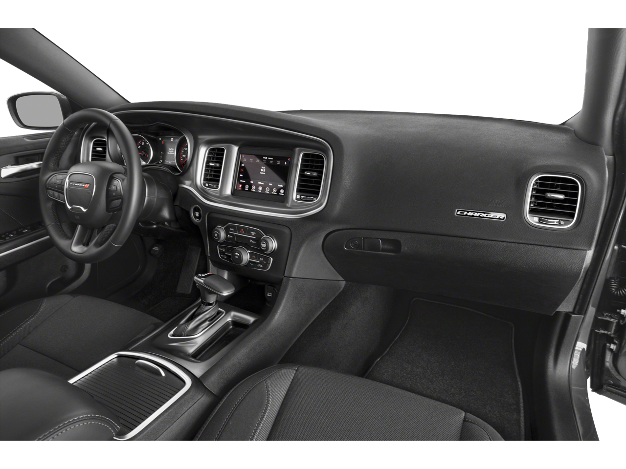 Blacktop Package (DISC) (Black 1-Piece Performance Spoiler, Dodge Grille Badge, Gloss Black Fascia Applique, Gloss Black I/P Cluster Trim Rings, Satin Black Charger Decklid Badge, Satin Black Dodge Tail Lamp Badge, Sport Suspension, and Wheels: 20 x 8 Black Noise Painted (DISC)), Quick Order Package 2EG, Black Cloth, 1-Yr SiriusXM Guardian Trial, 2-Piece Shark Fin Antenna, 276 Watt Amplifier, 4-Wheel Disc Brakes, 4G LTE Wi-Fi Hot Spot, 6 Speakers, 8.4 Touchscreen Display, ABS brakes, Air Conditioning, Alloy wheels, AM/FM radio: SiriusXM, Anti-whiplash front head restraints, Apple CarPlay, Apple CarPlay/Android Auto, AutoStick Automatic Transmission, Brake assist, Bumpers: body-color, Compass, Delay-off headlights, Driver door bin, Driver vanity mirror, Dual front impact airbags, Dual front side impact airbags, Electronic Stability Control, Emergency communication system: SiriusXM Guardian, For Details, Visit DriveUconnect.com, Four wheel independent suspension, Front anti-roll bar, Front Bucket Seats, Front Center Armrest, Front dual zone A/C, Front License Plate Bracket, Front reading lights, Fully automatic headlights, Google Android Auto, GPS Antenna Input, HD Radio, Houndstooth Cloth Sport Seat, Illuminated entry, Integrated Center Stack Radio, Integrated Voice Command w/Bluetooth®, Knee airbag, Leather Shift Knob, Low tire pressure warning, Media Hub (2 USB, AUX), Occupant sensing airbag, Outside temperature display, Overhead airbag, Overhead console, Panic alarm, ParkView Rear Back-Up Camera, Passenger door bin, Passenger vanity mirror, Power door mirrors, Power driver seat, Power steering, Power windows, Radio: Uconnect 4C w/8.4 Display, Rear anti-roll bar, Rear reading lights, Rear seat center armrest, Rear window defroster, Remote keyless entry, Speed control, Speed-Sensitive Wipers, Split folding rear seat, Steering wheel mounted audio controls, Tachometer, Telescoping steering wheel, Tilt steering wheel, Traction control, Trip computer, USB Host Flip, Variably intermittent wipers, and Wheels: 17 x 7 Painted Cast AluminuM.