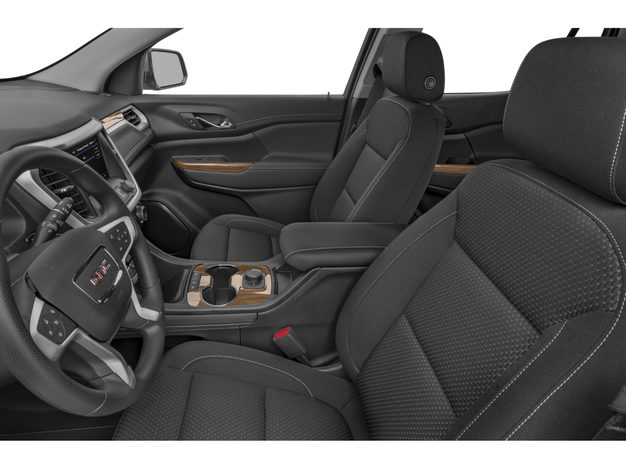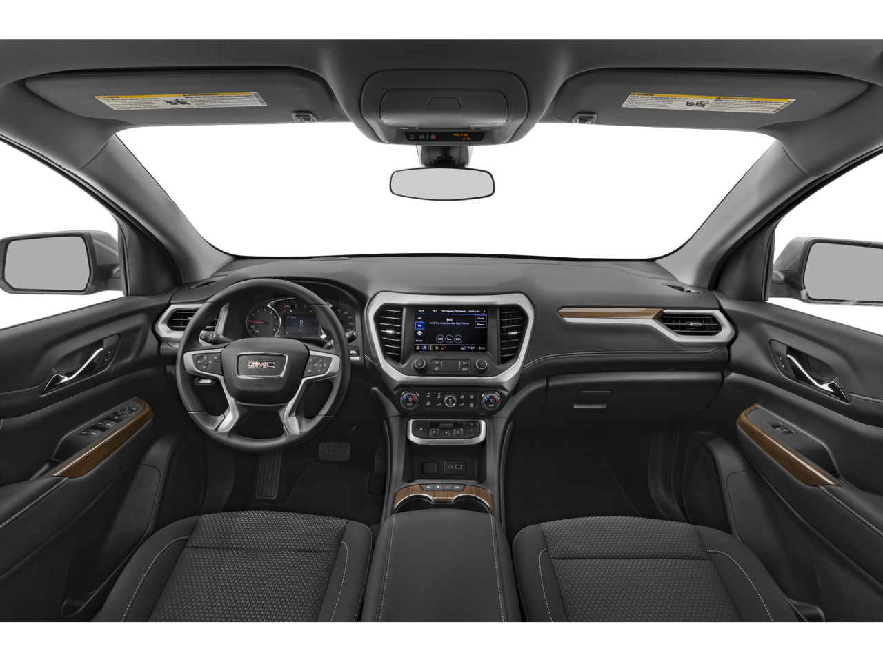 Preferred Equipment Group 3SA, FWD, Black Cloth, 3.47 Final Drive Axle Ratio, 3rd row seats: split-bench, 4-Way Manual Driver Seat Adjuster, 4-Way Manual Passenger Seat Adjuster, 4-Wheel Disc Brakes, 6 Speakers, 6-Passenger (2-2-2 Seating Configuration), 6-Speaker Audio System Feature, ABS brakes, Air Conditioning, Alloy wheels, AM/FM radio: SiriusXM, Apple CarPlay/Android Auto, Auto High-beam Headlights, Automatic temperature control, Brake assist, Bumpers: body-color, Compass, Delay-off headlights, Driver door bin, Driver vanity mirror, Dual front impact airbags, Dual front side impact airbags, Electronic Stability Control, Emergency communication system: OnStar and GMC connected services capable, Four wheel independent suspension, Front anti-roll bar, Front Bucket Seats, Front Center Armrest, Front dual zone A/C, Front License Plate Bracket, Front reading lights, Fully automatic headlights, Heated door mirrors, Illuminated entry, Knee airbag, Low tire pressure warning, Not Equipped w/Front & Rear Park Assist (060), Occupant sensing airbag, Outside temperature display, Overhead airbag, Overhead console, Panic alarm, Passenger door bin, Passenger vanity mirror, Power door mirrors, Power steering, Power windows, Premium Cloth Seat Trim, Radio data system, Radio: AM/FM w/8 Diagonal Multi-Touch Display, Rear air conditioning, Rear anti-roll bar, Rear reading lights, Rear window defroster, Rear window wiper, Remote keyless entry, Security system, SiriusXM Radio, Speed control, Speed-sensing steering, Spoiler, Steering wheel mounted audio controls, Tachometer, Telescoping steering wheel, Tilt steering wheel, Traction control, Trip computer, Turn signal indicator mirrors, Variably intermittent wipers, Voltmeter, Wheels: 18 Machined Aluminum w/Dark Accents, and Wireless Apple CarPlay/Wireless Android Auto.