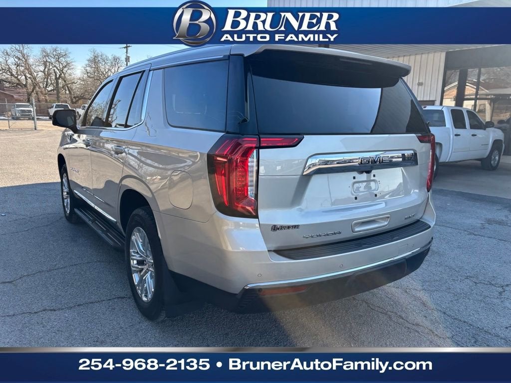 Certified. 2023 GMC Yukon SLT Pearl Beige Metallic 4WD 10-Speed Automatic with Overdrive EcoTec3 5.3L V8 4WD. Clean CARFAX. CARFAX One-Owner. Odometer is 4205 miles below market average!This 2023 GMC Yukon is located at our STEPHENVILLE location where we have a wide variety of QUALITY new and used vehicles. Bruner Auto Family, Your Family Since 1928!GMC Certified Pre-Owned Details:* Powertrain Limited Warranty: 72 Month/100,000 Mile (whichever comes first) from original in-service date* Roadside Assistance* Vehicle History* 172 Point Inspection* 24 months/24,000 miles (whichever comes first) Certified Pre-Owned Scheduled Maintenance Plan and 3 days/150 miles (whichever comes first) Vehicle Exchange Program. SiriusXM 3-month trial subscription* Limited Warranty: 12 Month/12,000 Mile (whichever comes first) from certified purchase date* Warranty Deductible: $0* Transferable WarrantyLicense Plate Front Mounting Package, Max Trailering Package, Preferred Equipment Group 4SA (2 Presets For Power Driver Seat, Bose 9-Speaker Stereo Audio System Feature, Bright Chrome Bodyside Moldings, Bright Front & Rear Door Sill Plates, Chrome Door Handles w/Body-Color Strip, Hands-Free Power Programmable Rear Liftgate, Heated & Ventilated Driver & Front Passenger Seats, Heated Driver & Front Passenger Seats, Inside Rear-View Auto-Dimming Mirror, Safety Alert Seat, Universal Home Remote, and Wireless Charging), SLT Luxury Package (2 Presets For Outside Rearview Mirrors, 3rd Row 60/40 Power-Folding Split-Bench Seat, Adaptive Cruise Control, Enhanced Automatic Emergency Braking, HD Surround Vision, Heated 2nd Row Outboard Position Seats, Heated Steering Wheel, Outside Heated Power-Adjustable Mirrors, Power Release 2nd Row 60/40 Split-Folding Bench Seat, Power Tilt & Telescopic Steering Column, and Rear Pedestrian Alert), SLT Premium Package (Dual-Pane Panoramic Power Sunroof), GMC Certified Pre-Owned Certified, 4WD, 3.23 Rear Axle Ratio, 3rd row seats: split-bench, 4-Wheel Disc Brakes, 9 Speakers, ABS brakes, Air Conditioning, Alloy wheels, AM/FM radio: SiriusXM with 360L, AM/FM Stereo, Apple CarPlay/Android Auto, Auto High-beam Headlights, Auto-dimming Rear-View mirror, Automatic Emergency Braking, Automatic temperature control, Bodyside moldings, Brake assist, Bumpers: body-color, Compass, Console-Mounted Safe (LPO), Delay-off headlights, Driver door bin, Driver vanity mirror, Dual front impact airbags, Dual front side impact airbags, Electronic Stability Control, Emergency communication system: OnStar and GMC connected services capable, Extra Capacity Cooling System, Following Distance Indicator, Forward Collision Alert, Four wheel independent suspension, Front & Rear Park Assist, Front anti-roll bar, Front Bucket Seats, Front Center Armrest, Front dual zone A/C, Front fog lights, Front Pedestrian Braking, Front reading lights, Fully automatic headlights, Garage door transmitter, Heated door mirrors, Heated front seats, Hitch Guidance w/Hitch View, Illuminated entry, Integrated Trailer Brake Controller, IntelliBeam Automatic High Beam On/Off, Lane Change Alert w/Side Blind Zone Alert, Lane Keep Assist w/Lane Departure Warning, Low tire pressure warning, Memory seat, Navigation System, Occupant sensing airbag, Outside temperature display, Overhead airbag, Overhead console, Panic alarm, Passenger door bin, Passenger vanity mirror, Perforated Leather-Appointed Seating, Power door mirrors, Power driver seat, Power Liftgate, Power passenger seat, Power Release 2nd Row Bucket Seats, Power steering, Power windows, Premium Smooth Ride Suspension, Rain sensing wipers, Rear air conditioning, Rear anti-roll bar, Rear Cross Traffic Alert, Rear reading lights, Rear seat center armrest, Rear window defroster, Rear window wiper, Remote keyless entry, Roof rack: rails only, Security system, SiriusXM w/360L, Smart Trailer Integration Indicator, Speed control, Speed-sensing steering, Split